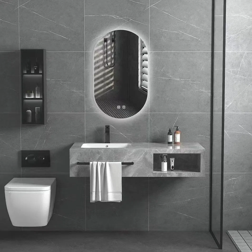 Luxury Marble Sanitary Ware Bathroom Vanity with LED Mirror New Design Rock Slate Bathroom Vanity Cabinet with Ceramic Basin and Towel Shelf Luxury Marble Sanitary Ware Bathroom Vanity with LED Mirror New Design Rock Slate Bathroom Vanity Cabinet with Ceramic Basin and Towel Shelf