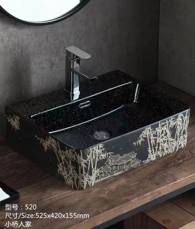 You are here: Home / Products / Ceramic Wash Basin / Color Art Basin / Rectangle Round Gold Wash Above Counter Home Hotel Restaurant Washroom Bathroom Sinks